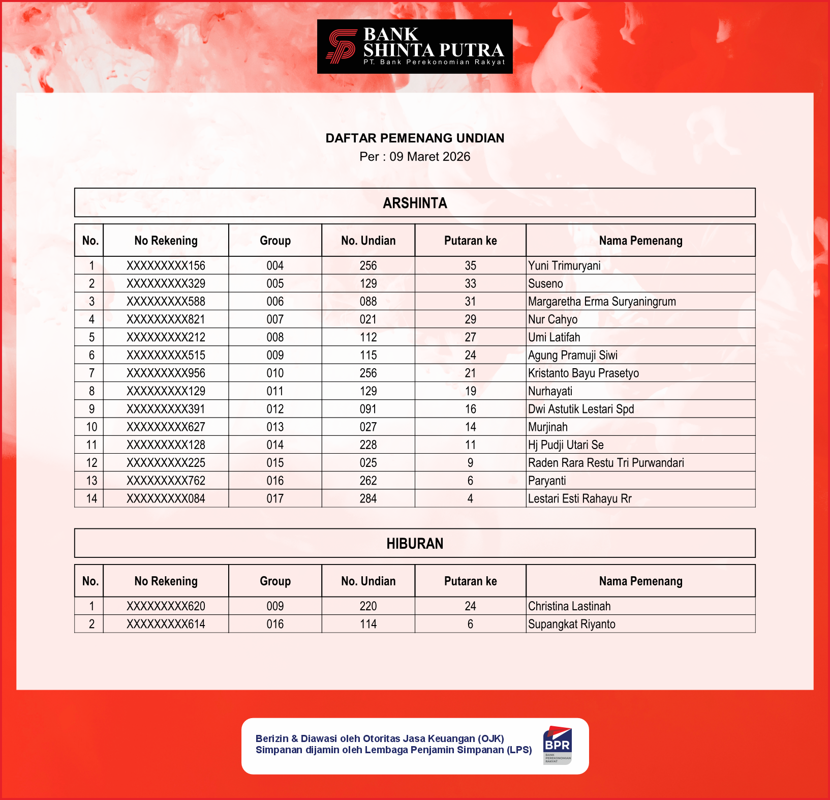 Kepada Yth Nasabah BPR Bank Shinta Putra Berdasarkan Surat Keputusan Menteri Hukum dan Hak Asasi Manusia Republik Indonesia Nomor : AHU-0022051.